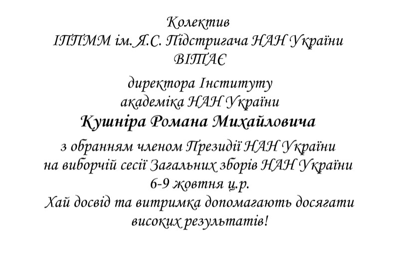 Інститут прикладних проблем механіки і математики ім. Я.С. Підстригача НАН України з глибоким сумом сповіщає, що 4 березня 2022 р. перестало битися серце відомого вченого та педагога, доктора фізико-математичних наук, професора, лауреата Державної премії України в галузі науки і техніки